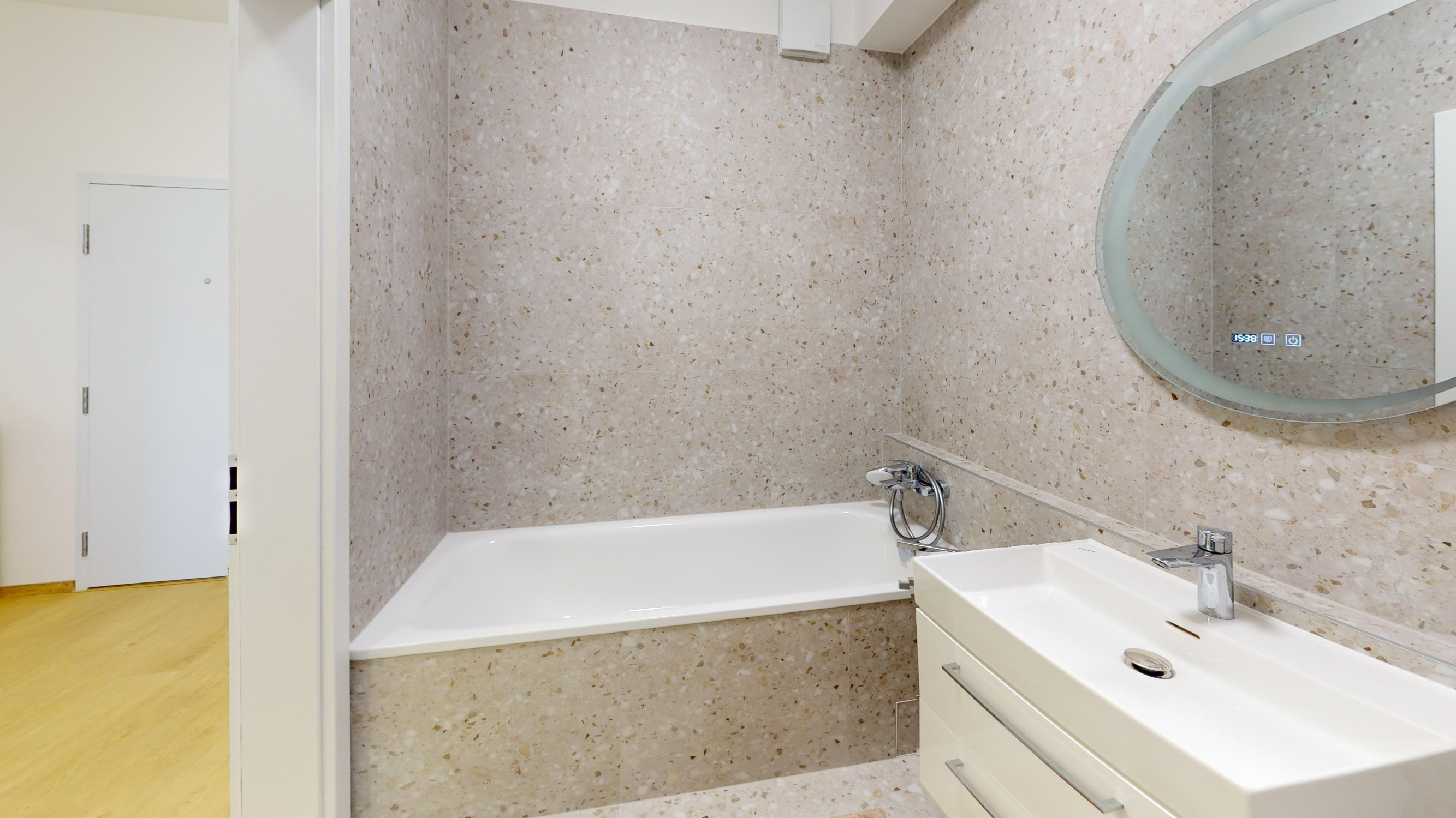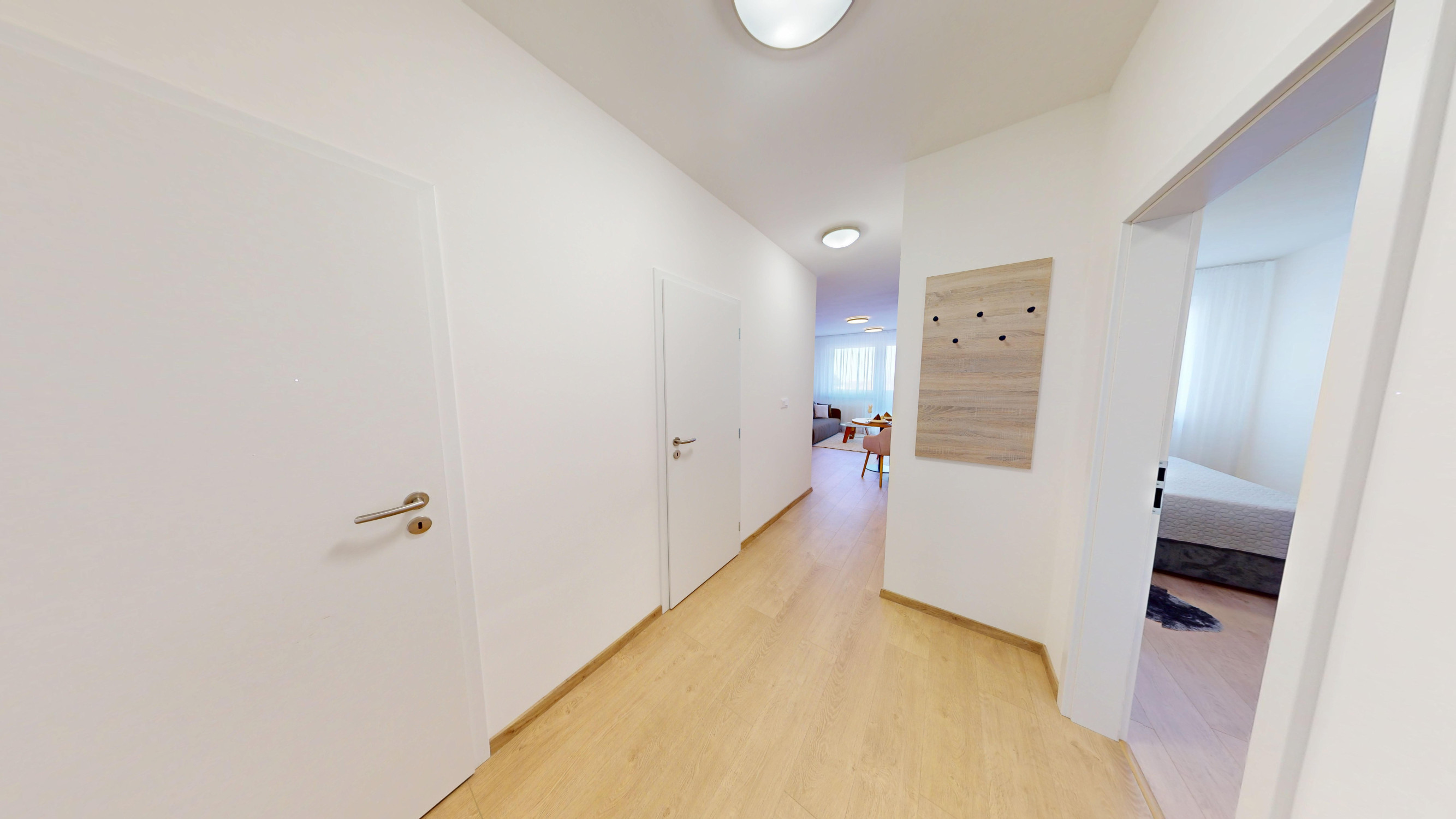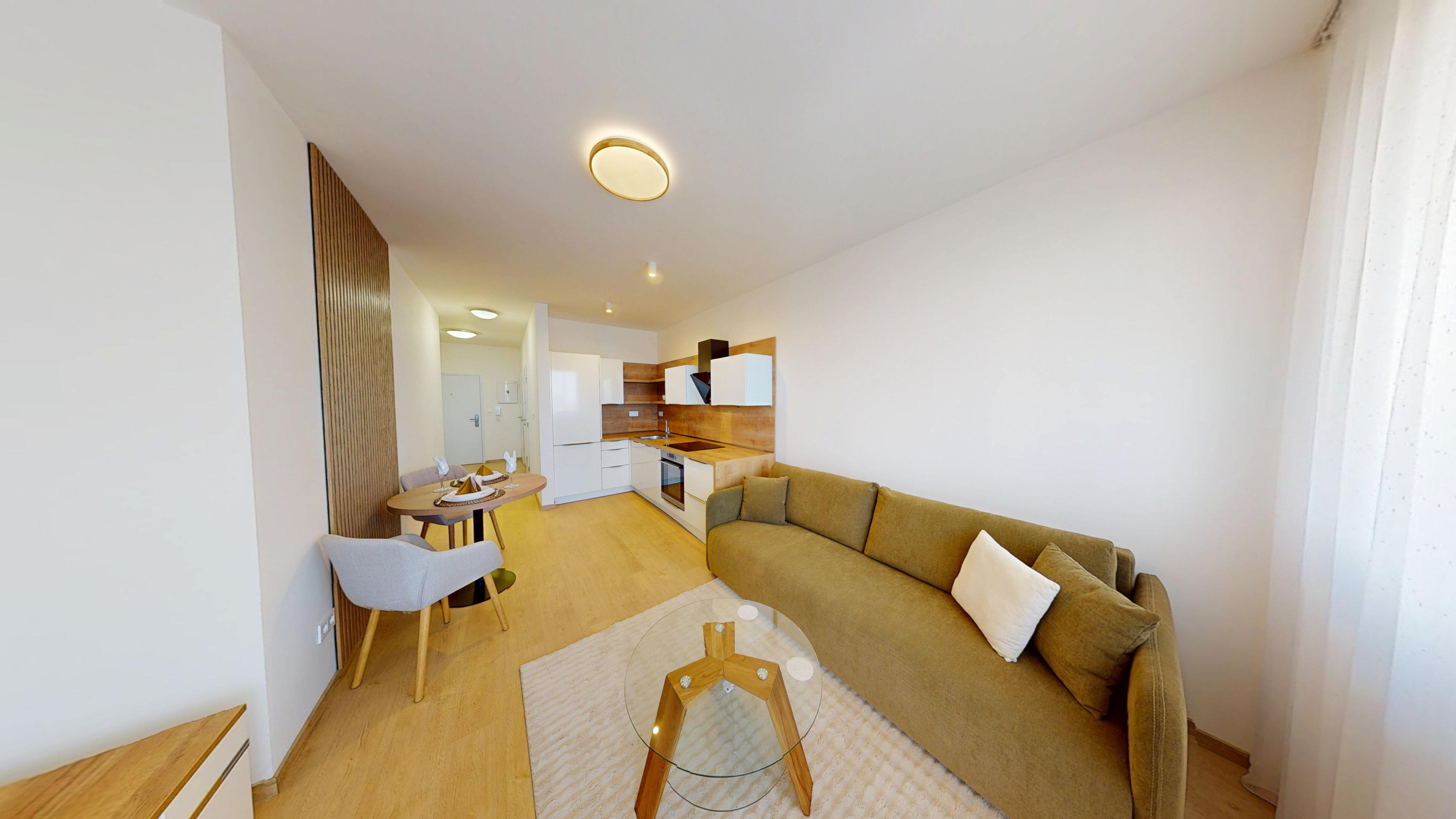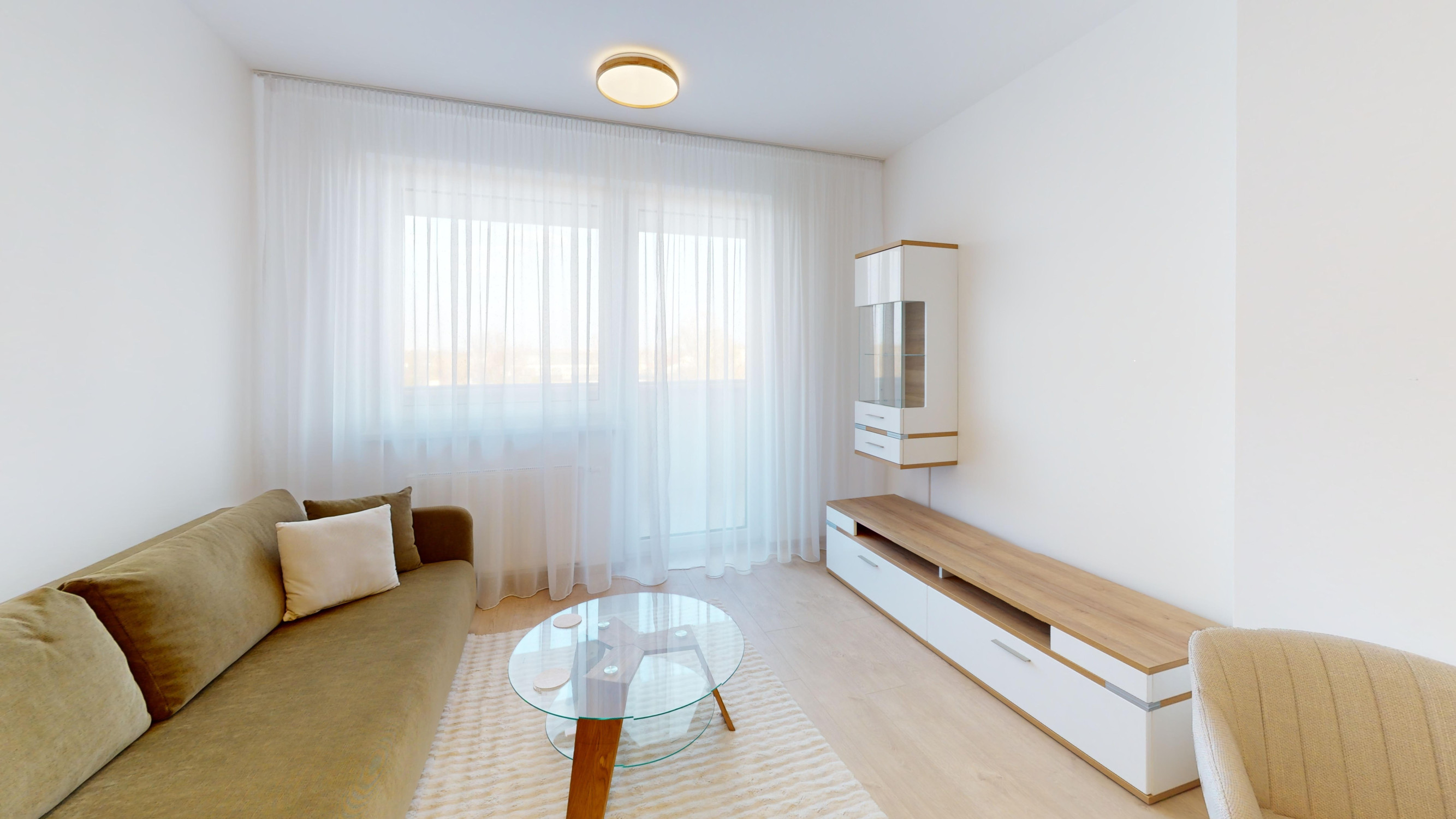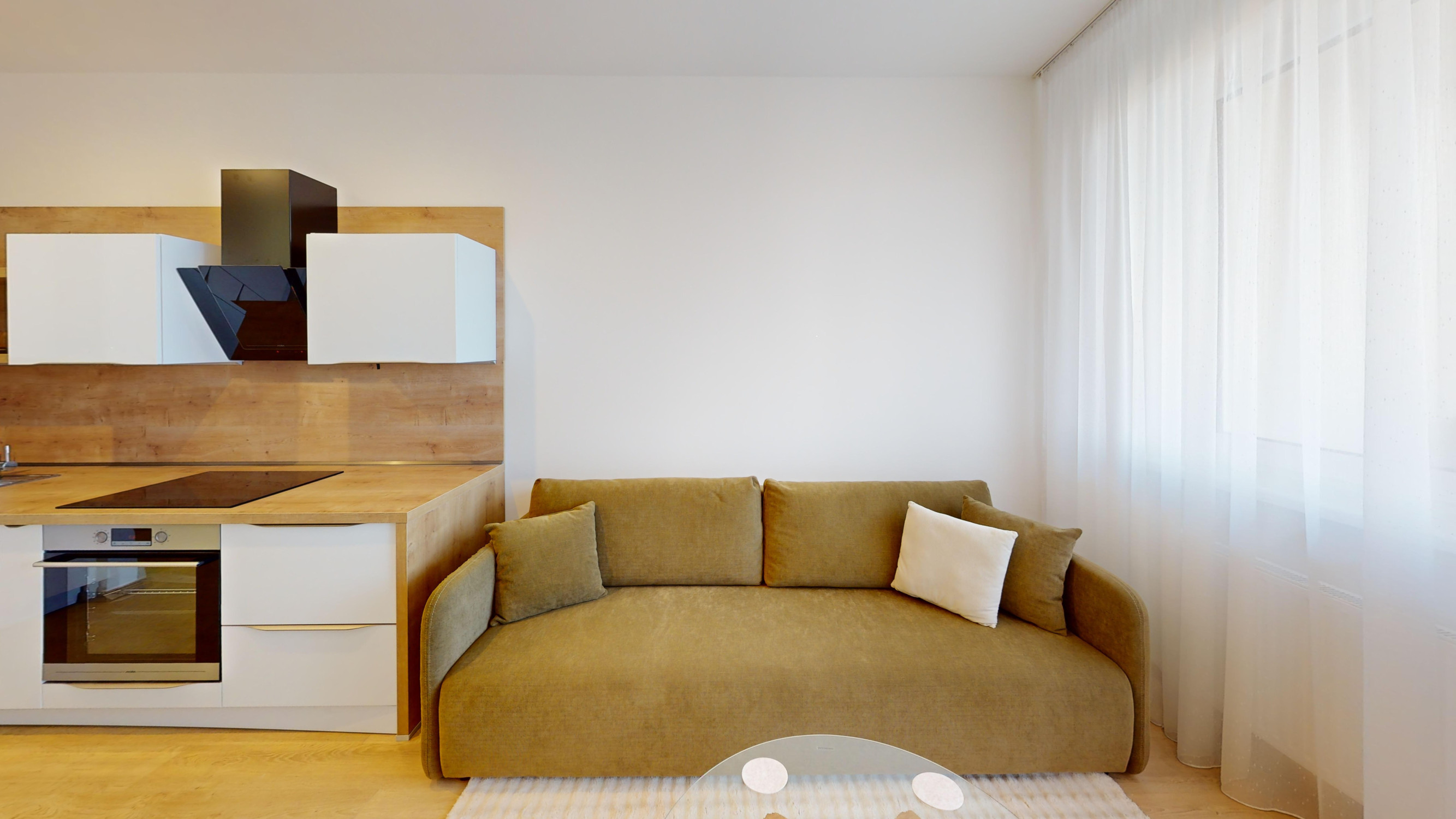 Byt sa prenajíma kompletne zariadený bez nutnosti ďalšej investície. Vstupná chodba je vybavená skrinkou na topánky a vešiakom na kabáty. Obývacia izba spojená s kuchyňou na mieru a vstavanými spotrebičmi značky MORA (varná doska, rúra, digestor, chladnička) je moderne a funkčne zariadená a ponúka príjemné bývanie pre jednotlivca, či pár. V spálni je dostatok úložného priestoru, manželská posteľ s nočnými stolíkmi. Veľkou výhodou je výstup z obývacej izby na priestranný balkón.